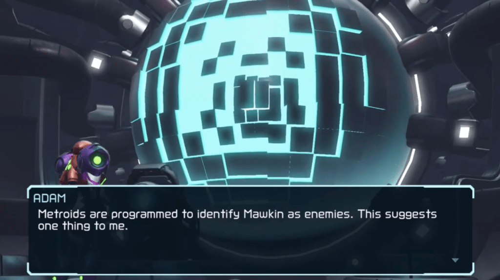 Excuse me, what? Metroids are specifically programmed to attack the Mawkin tribe of Chozo. And this programming is so strong that when Samus fought a Mawkin, her Metroid DNA came roaring to the surface and began to take over. This intriguing plot thread isn’t pulled on any further in the game itself, but we can speculate based on the clues we’ve been given.